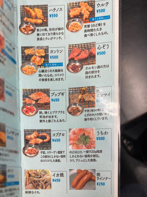 プップギ(肺)、ハチノス、ホソ(小腸)。