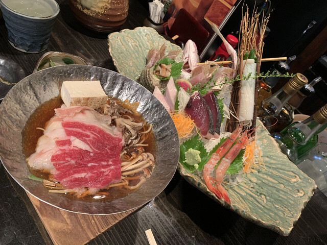 今回は、二人で、食事のコースを頂きました。枝豆、牛肉の鍋、お造り、カニとアワビの磯焼き、アジの天ぷら、秋鮭とイクラの炊き込みご飯でした。満足しました。