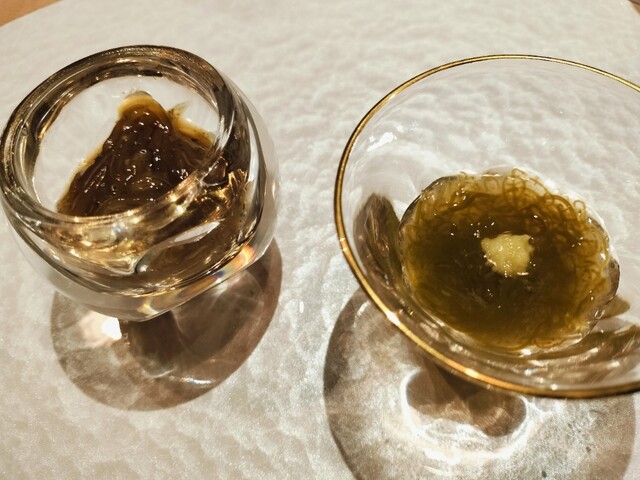 白エビに酒盗がのってる一品にはぜひ日本酒を
