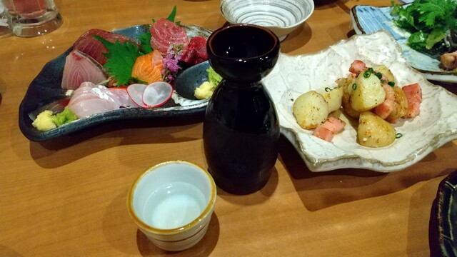 刺身の盛り合わせも9品入っていて鮮度も良く日本酒との相性も抜群でした、お酒も自分の好みを言うと親方が選んでくれるので安心です 今回は黒ばくれんと言う山形のお酒を燗でいただきました。