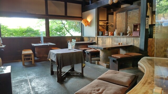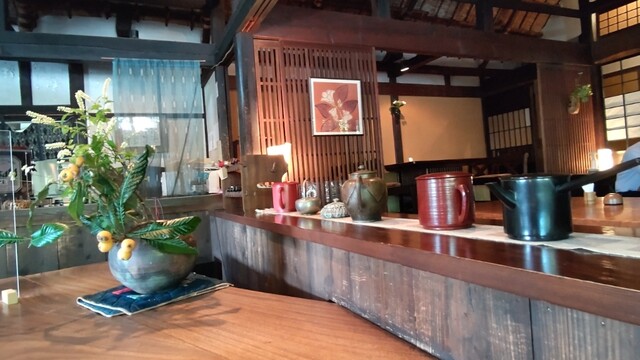 古民家移築の店。落ち着いた雰囲気だが、席によってはテーブルの足がデカいので邪魔そう