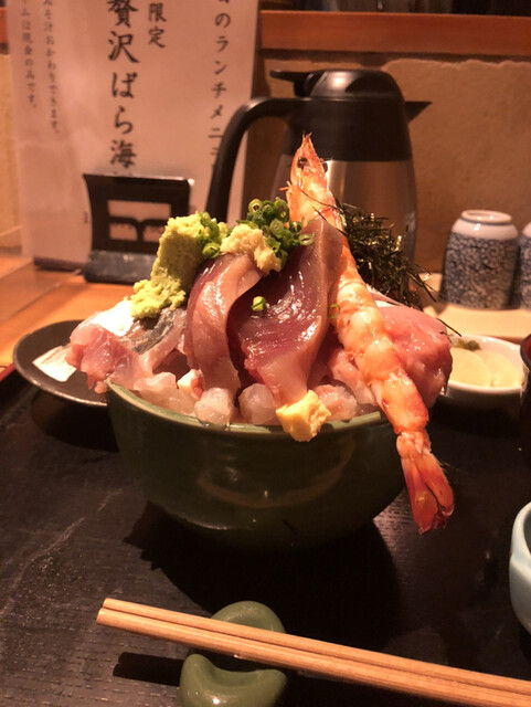 こちらのお店 以前からの宿題店 久兵衛の並びのビルの4階 メニューバラちらしに決めていたが、一階のメニューにバラちらし1800円とあり、前情報は1500円でしたので値上げ!せっかくだから入店 前客2...