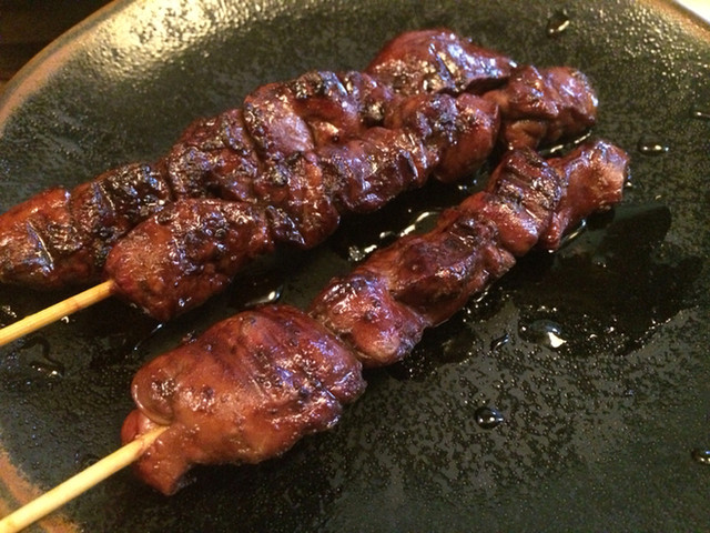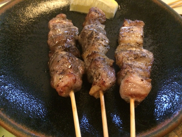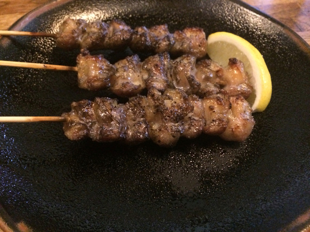 職人肌のご主人と女将さんの二人で切り盛りされてます。最初のお通しは野菜サラダ(笑)でこれから焼鳥を食べる事を考えるとナイスなチョイスです。生ビールは冷え冷えで出て来ます!肝心の焼鳥ですが能登産中心です。(特に出身地とかではないみたいです)ジューシーで美味です!豚串は鹿児島県産の黒毛豚を使用していてまろやかな味わいです!どの串もレベルの高い品々です。好物のチャンジャは韓国海苔に巻いて食べるタイプで酒飲タイプにはマストなアイテムです!締めのもつ鍋は一人前から対応してもらえ頭が下がる思いです。三人で美味しいツマミに酒が進み黒霧島を開けてから当然、二本目のキープ!再訪問の意思表示です。最後にピオーネのサービスも有り、至れり尽くせりでした。こんなに美味しい焼鳥屋さんがあれば駅前まで出る必要が無くなります。美味しい発見でした(笑)