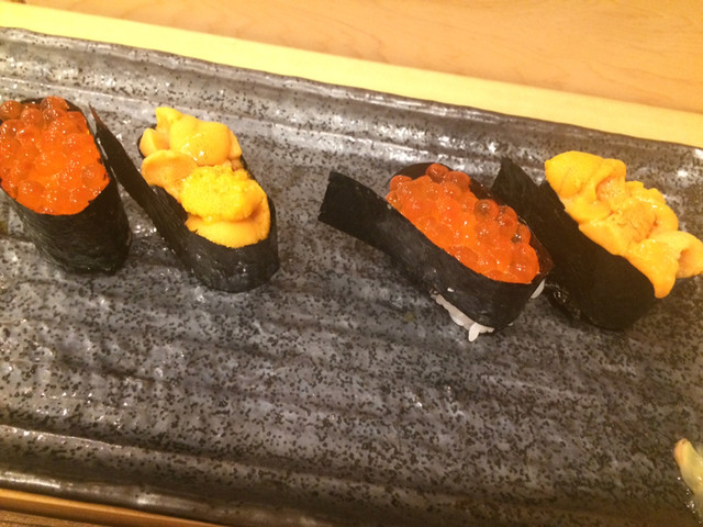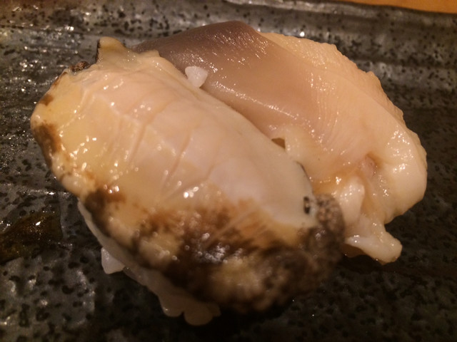 此方のお店は初訪問となります。先代のお店は20年前に訪問して以来に週に数回訪れる常連のお店でした。親父さんが体調を崩してからすし善本店勤務の次男坊が後を継ぐ形で今の店舗を出店しています。移転しましたが親父さんのDNAは健在です。今回は札幌単身三年目の息子との訪問となりましたが素材は先代と変わらずに抜群です。刺身関係のツマミから本格的な握りと最高なパフォーマンスを発揮します!此方の旧来の穴子焼きは絶品である事は疑いの余地が有りませんが全てが最高の状態で提供されます。最初の付け出しは水蛸の頭をボイルしたものが温かい状態で提供されました。柔らかな食感と磯の風味が楽しめます。