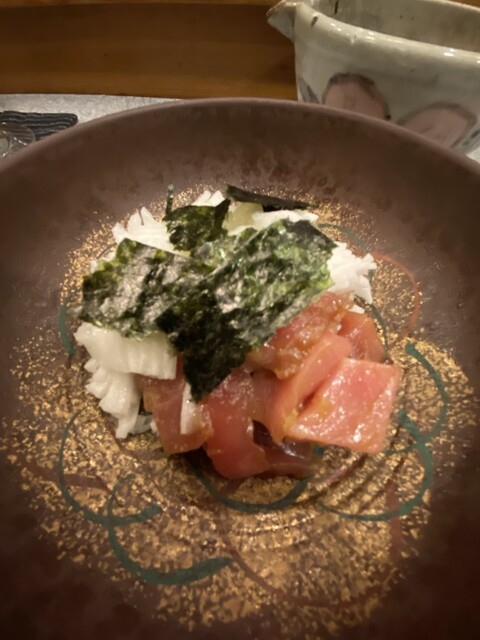 ツマミのマグロは熟成してあるのかな?旨みが凄いです。あえて山芋はトロロにせず千切りにしてあるそうで、シャキシャキとした歯触りがとても良い。大吟醸焼きは香りがとても良い。香りだけで酒が飲めます。