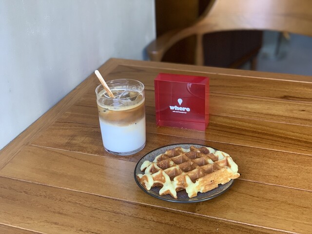 ワッフルとキャラメルラテを注文、ワッフルも美味しいですがキャラメルラテが甘くて超私好み!