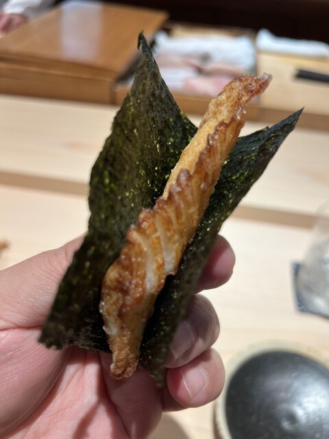 写真はありませんが、クエの塊を炙っていたり、サワラを即興ウニ醤油で食べさせてくれたりと楽しいです。