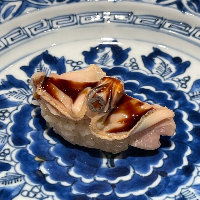 握りに移っても工夫が見られます。さすが、ロブションの日本食メニュー作りを2年もされていたわけですよね。普通じゃない!私の予想の上を行くお鮨です。