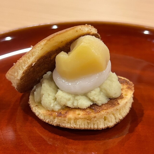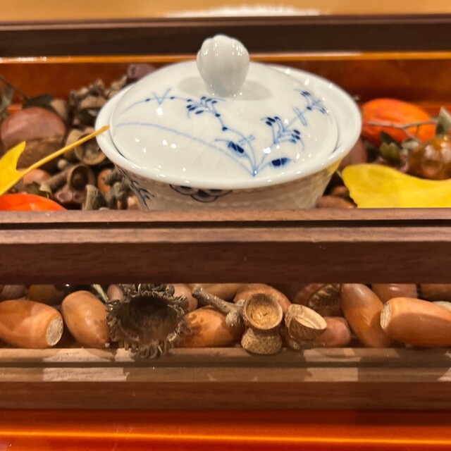 八寸が秋のみのりを表現しています。変化球のジーマミー豆腐が美味しかった。