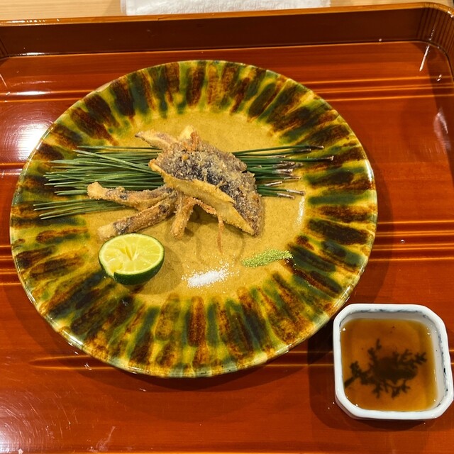 追加の松茸の天ぷらは塩だけではなく、ウスターソースの出汁割りで食べても美味しいです。