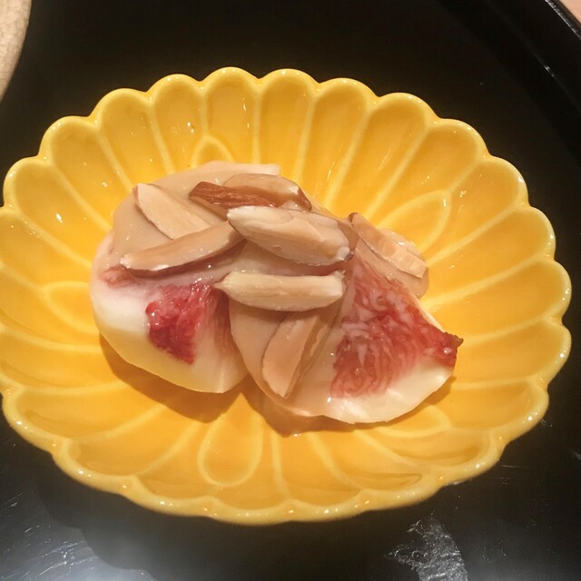 食前酒の自家製梅酒のあとに、白子とゆばの蒸し物。