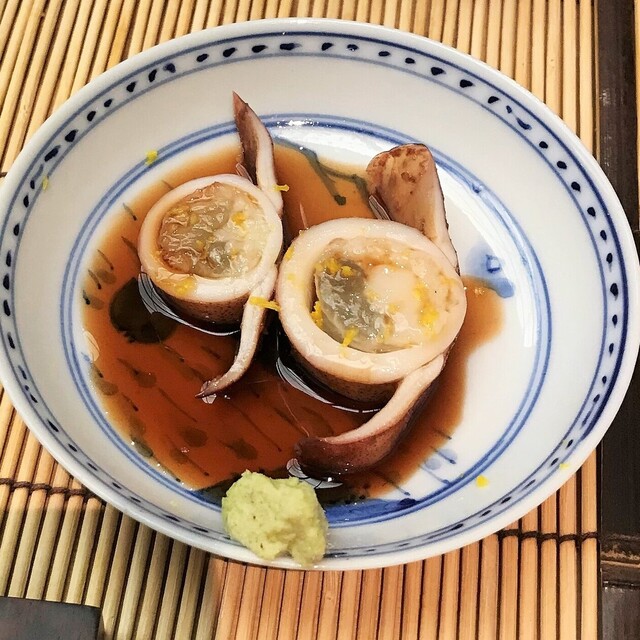 ひらめ、トリ貝(刺身)のあとに烏賊の印籠詰めと続きます。