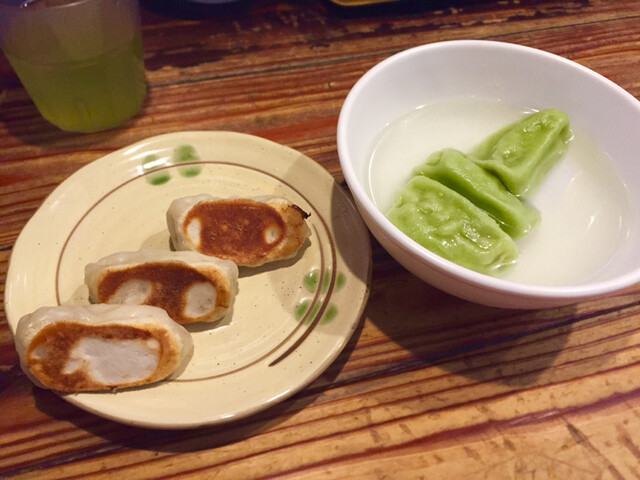 水餃子はほうれん草を練り込んだ生地なので緑色をしています。