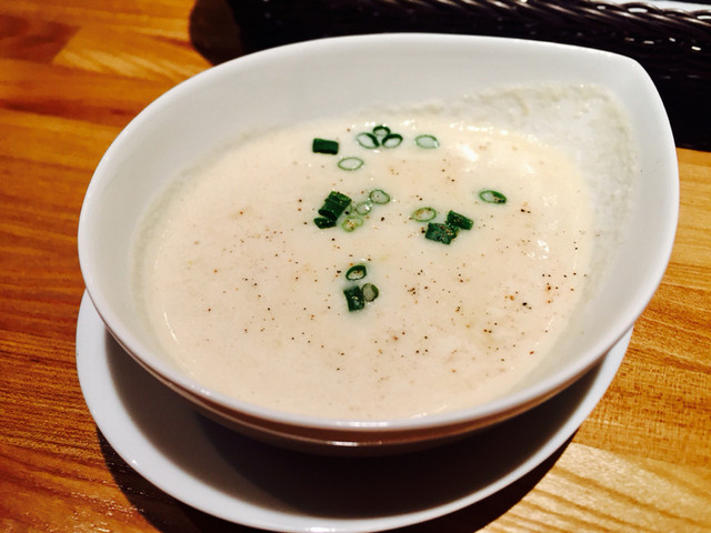 焼きねぎのポタージュもまろやかで美味しい。