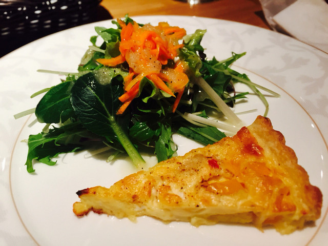 寿司五貫、サラダ、キッシュ、焼きねぎのポタージュ。
