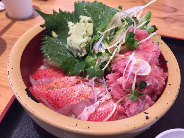 金目鯛とネギトロ丼とかわはぎの肝合え丼を注文。