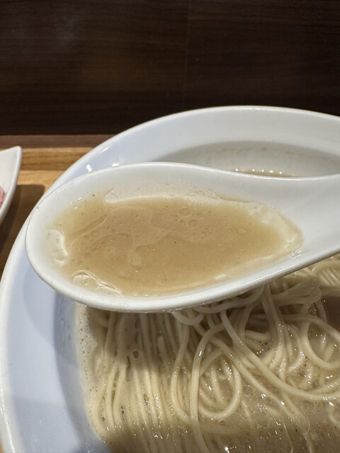 白身ソバ、スープを飲むと本当に白身魚の味がして、とても美味しい。牡蠣煮干そばは、煮干が効いたスープにほんのり牡蠣の味わいがしてこれもまた美味しい。