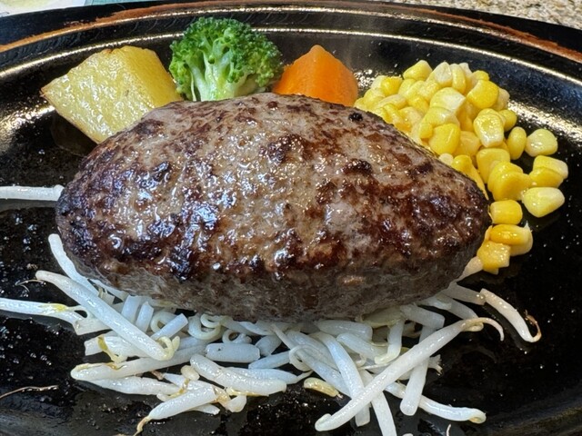 前日に孤独のグルメでハンバーグを食べていた吾郎さんを見て、ステーキよりハンバーグが食べたくなり、かうはーどハンバーグとBセットのライ麦パンと牛汁、かうはーどサラダのハーフサイズを注文。