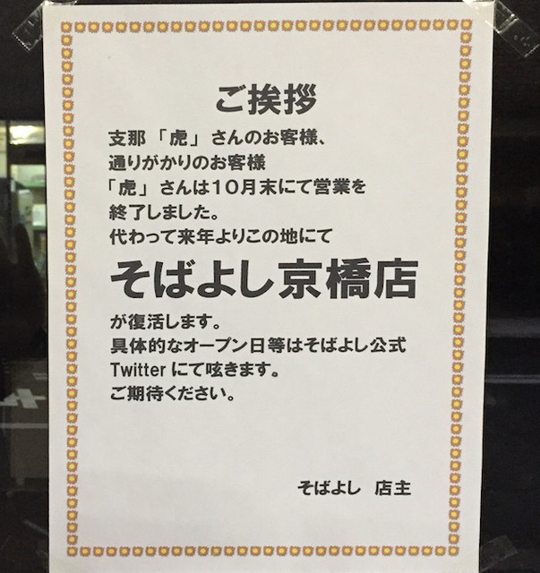 そばよしが京橋に帰ってくるー? (2016/11/18)
