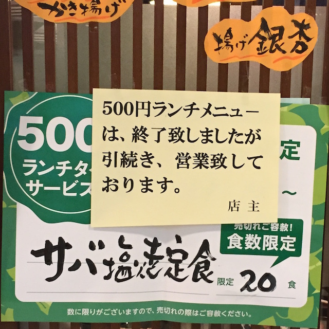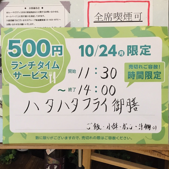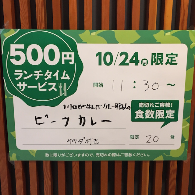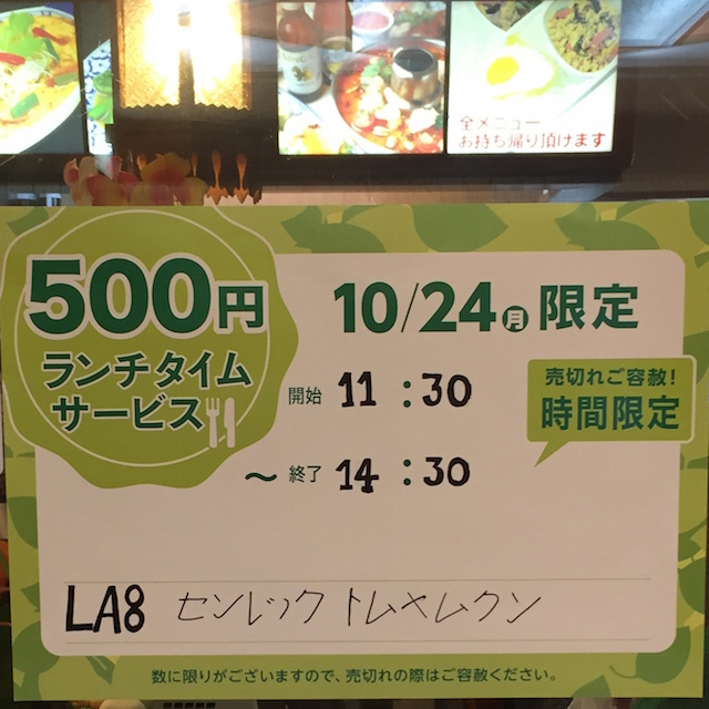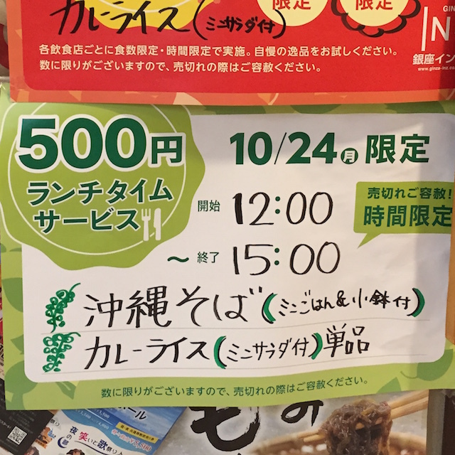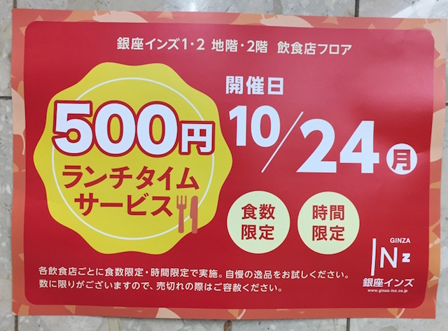 500円ランチ:銀座インズで10/24 (2016/10/19)