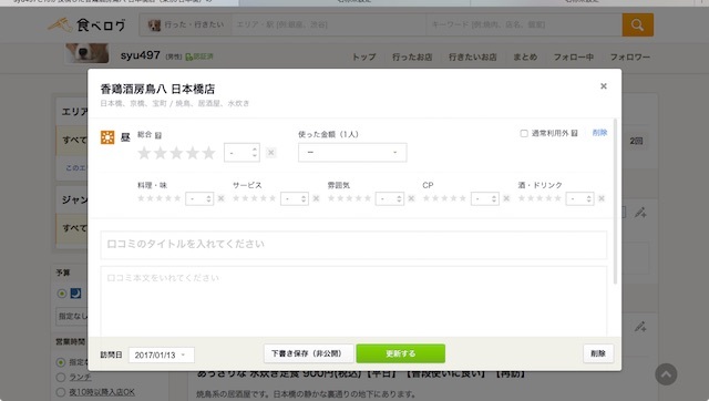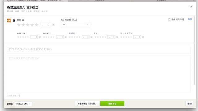 [JS]口コミ投稿画面を全画面に広げるブックマークレット (2017/05/04)