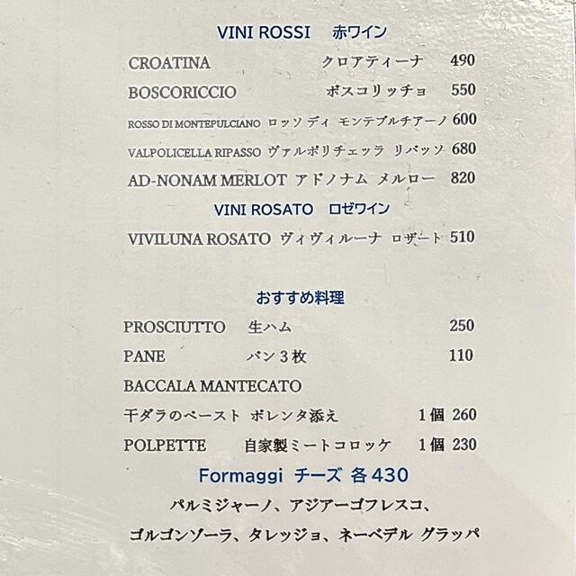 OMBRA ROSSO(赤ワイン) 250円(税込)