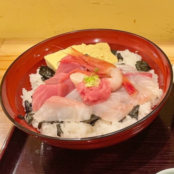 【平日】雰囲気の良いカウンター席で、トロもエビもとろんと 海鮮丼 1540円(税込)