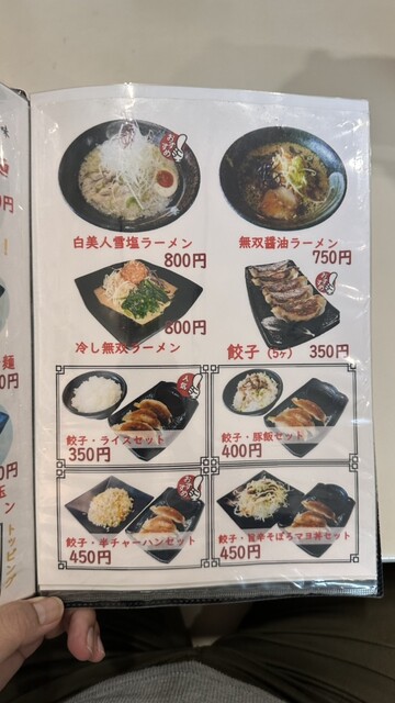 凄い久しぶりにお邪魔しました。いつの間にか周りに建物が増えて賑やかな通りになってました。自分は麺類をそんなに食べたりしないんですが、この店のラーメンは麺も美味しくスープも出汁が効いてるのでメッチャ好きです。味玉無双ラーメンはスープにコクもあるが辛味も良い塩梅で最後まで美味しく頂ける。無双醤油ラーメンは出汁がメッチャ美味しく自分好み♪餃子もニンニクが効いて美味しい。小ぶりな中華丼は男性の方だとラーメンと一緒に食べると ちょうど良いかも(๑´ڡ`๑)お近くへ行かれた際は是非寄ってみて下さい。