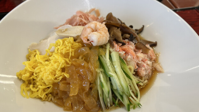 お昼を過ぎてたので、席への案内もスムーズ入れ、スタッフの対応も良く好印象♪この日は暑くて食欲は無かったんですが小腹が空いたので、冷やし中華のデザートセットを注文、かき氷で怠さが回復(笑)とても満足しました。