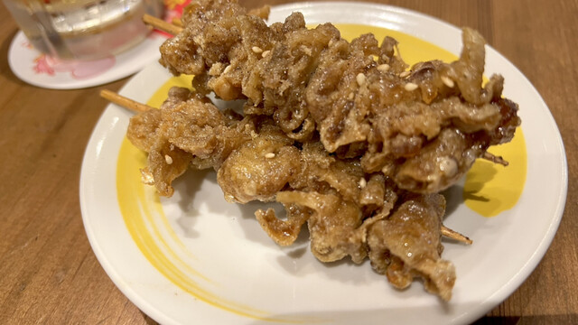 入口は狭いけど、店内は意外と広い。入店すると沢山の客で賑わってました。お一人様だったのでカウンターに案内されました。看板メニューの伝串は甘辛い醤油ベースで、マジでクセになる食感と味で、ついつい追加しちゃう美味さでした。もちろんレバ刺しも美味かったです。
