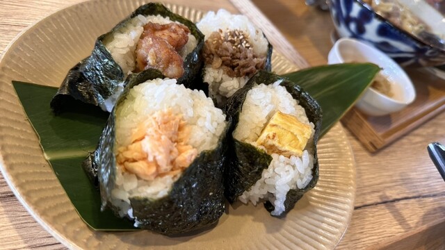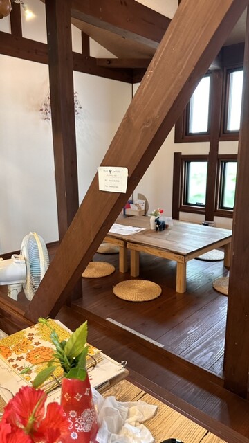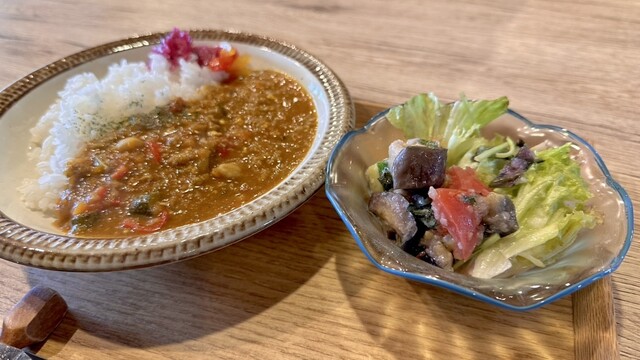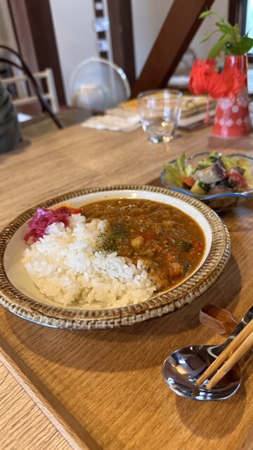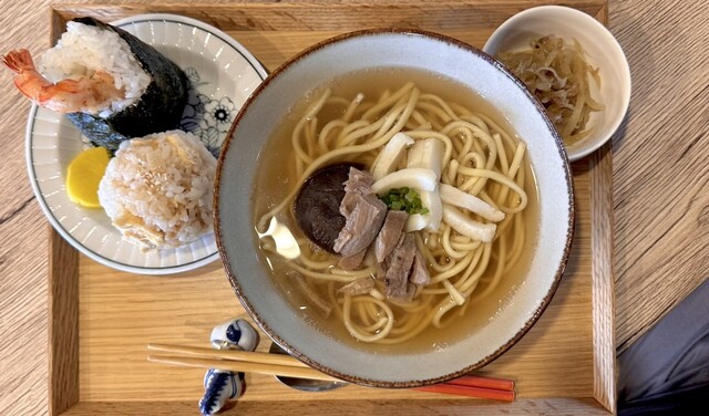 周りに民家が建ってる中に古民家風の店がありました。店舗裏に駐車場は3台ほど停められ。第二駐車場もあるみたいなので、車で行かれる方でも大丈夫です。人気店なので予約をした方が確実に入れると思いました。自分達は飛び込みで行きましたが運良く空きがあったみたいで快く入れてくれました。その後に来るお客さんは予約してない方々は入れず待ちの方々もいらっしゃいました。八重山そばセットの、そばもスープの出汁が美味しく麺のコシも良く美味しかったです♪キーマカレーもスパイシーですが後味はアッサリとしてるので御飯が進みます♪単品で、おにぎりも頼みましたがボリュームがありかなり、お腹いっぱいに大満足でした。