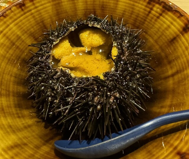 そして、例えば毛蟹はほぐしてシャリと合わせて手巻きで手渡ししてくれるとか、雲丹に昆布出汁合わせるとか、こちらならではのお味と提供方法。(ハラペーニョや漬け胡椒は言わずもがなです笑)