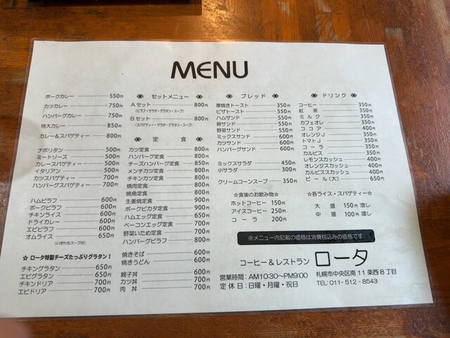 ロータ(中島公園通、山鼻9条、行啓通/レストラン、洋食、食堂)
