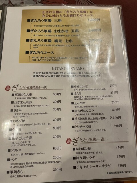 焼鳥は、珍しいぎたろう軍鶏が食べられます。