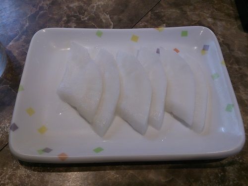 これは非常に薄味ですから、好みに合わせて醤油をたらして頂きます。