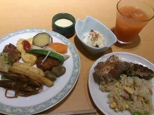 うどん、鶏飯、炒飯、豚汁、カレーライスなどバイキングの定番メニューも手抜きは見られません。
