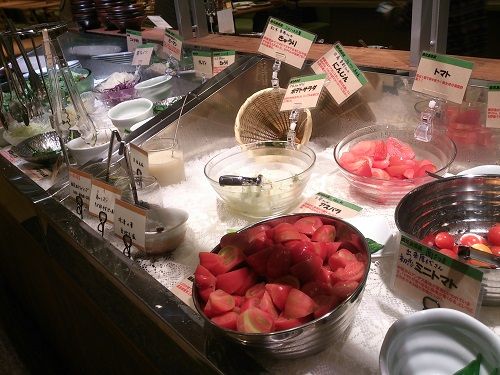 早速、ブッフェを見ると新鮮な野菜や果物が色鮮やか