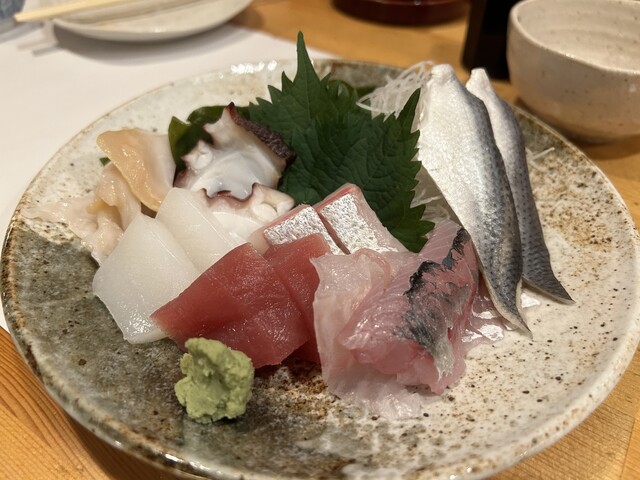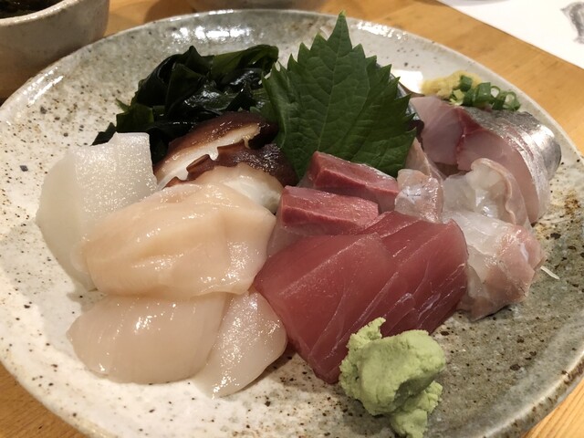 □刺し盛り・・・・特別に少ないポーションで出してもらいましたが、どれを食べても笑顔が漏れるうまさです。