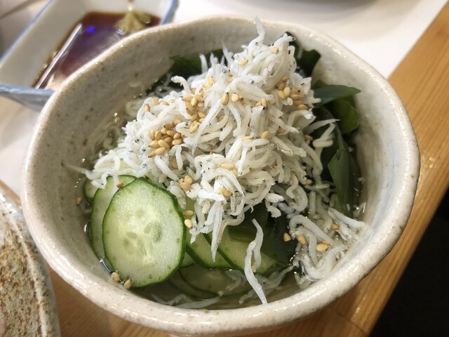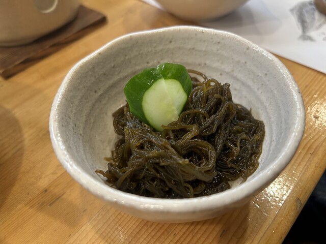 〆は、代表は鮭おにぎり・あおさの味噌汁