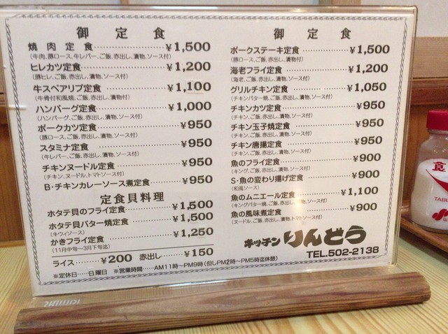 ヒレカツ定食・ハンバーグ定食・ホタテフライ単品