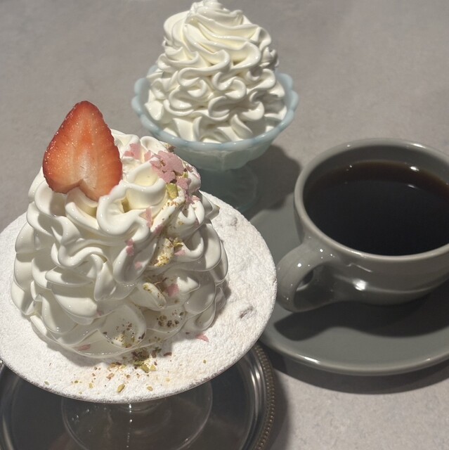 ふわふわなめらかなソフトクリームは単体でも絶品、粉糖の下もスプーンひと掬い毎にサプライズが味わえて楽しく、食べる手が止まらない…!(そうして撮影し忘れる)人生で1番美味しいパフェです。