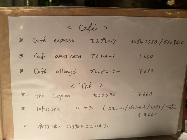 基本的にコースは無く、アラカルトなのでシェフと奥様と相談になります。