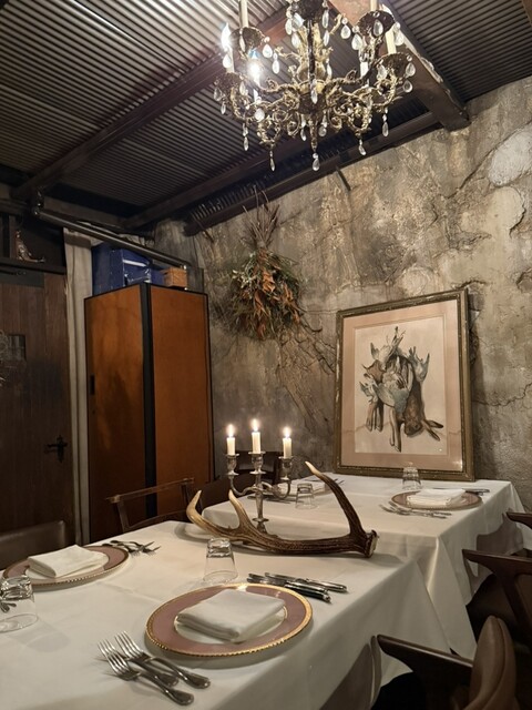 シェフの話では、中世ヨーロッパ時代の狩猟を終えた貴族が戻ってくる館をイメージしていると言う事で、本場フランスで体験して来たシェフだけあって、ディズニーランドのハリボテ感とは全く違い、本物感が半端ありません(笑)