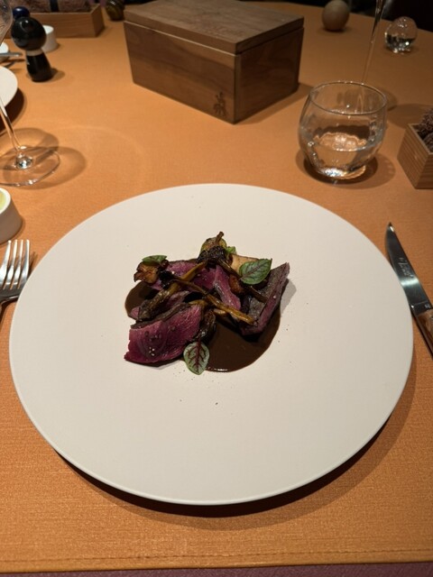 本日1番感動したのはジビエのコンソメに入ってたフォアグラと鶏のムースを詰めたラビオリや、宮崎県産網獲り青首鴨の炭火焼かな。火入れが抜群でした。