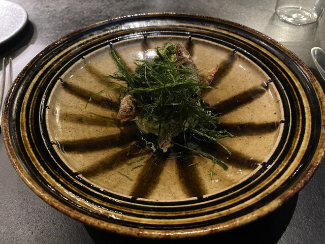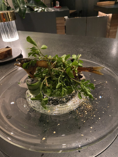 甘露煮をイメージしたと言うその味は、全体的には甘味先行で、そこに鮎の風味、苦味、山椒など様々か味が加わり、複雑に舌を刺激してきます。