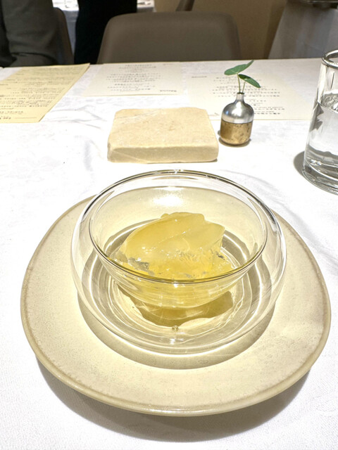 ❼アバンデセール ココナッツのブランマンジェ、山形県産ラフランス、レモンと杏のゼリー。