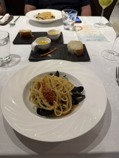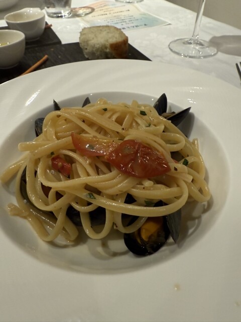 8皿目 モンサンミッシェル産ムール貝のパスタ。