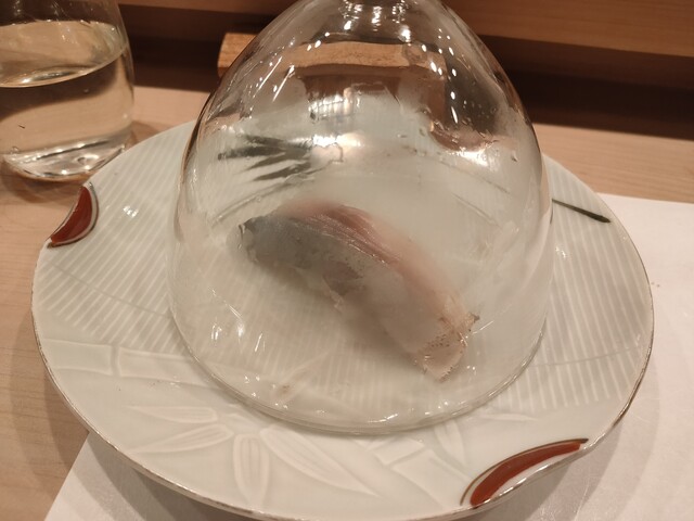 コースにていただきました。全国から集めた旬の魚を使い、料理一つ一つに 丁寧な仕事が施されています。こちらの大きな特徴は、数日から長いものでは数週間かけて熟成させた魚を使っている点です。旨味が引き出された魚は、鮮魚とは異なる深い味わいを感じさせてくれます。寿司に加え、茶碗蒸しやお椀、サンドイッチや焼き魚、リゾット、たまごの蒸しあげなど、季節に応じたアイデアが詰まった料理が次々と出てきます。
