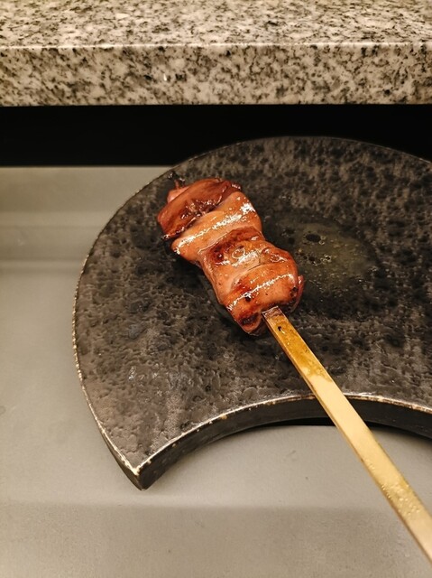 最初の串の佐田十郎つくねは非常に印象的です。目の前に置かれた段階で肉汁があふれ出しており、食べると上品な脂と鶏の旨味が口いっぱいに広がります。鶏そのものの良さがよく分かり、最初の一本からこの店の実力をはっきり感じさせてくれます。続くむね抱き身やささみも、さっぱりとしながら身の締まりが良く、噛むほどに味が広がる仕上がりです。ぼんじりに玉ねぎを挟んでサルサソースを使った串は意外にも整っており、完成度の高さとその美味さに驚きました。鶏皮、白れば、半熟うずら、ねぎま等、どの串も食べるたびに自然と声が出るほど完成度が高く、満足感があります。