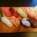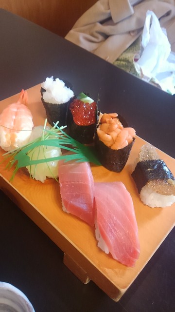 中トロ×2、白身(確認せず、、、)、海老、雲丹、いくら、穴子、赤貝
